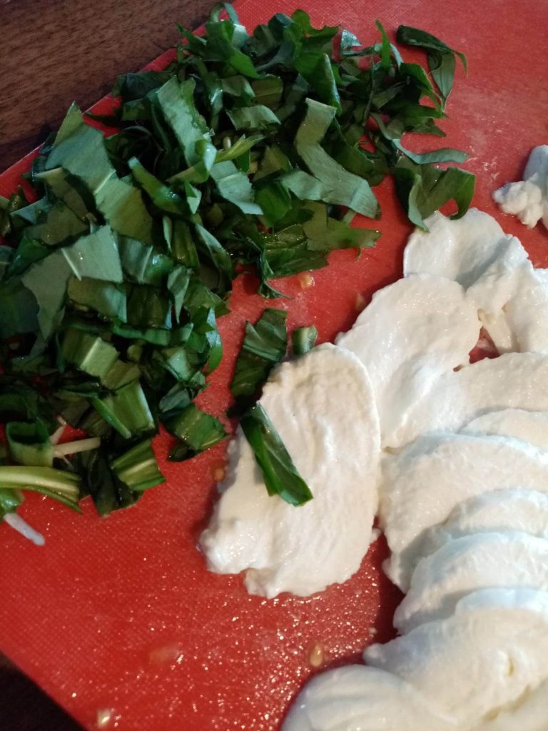 - Répartir l’ail des ours sur les légumes puis ajouter la mozzarella par dessus.